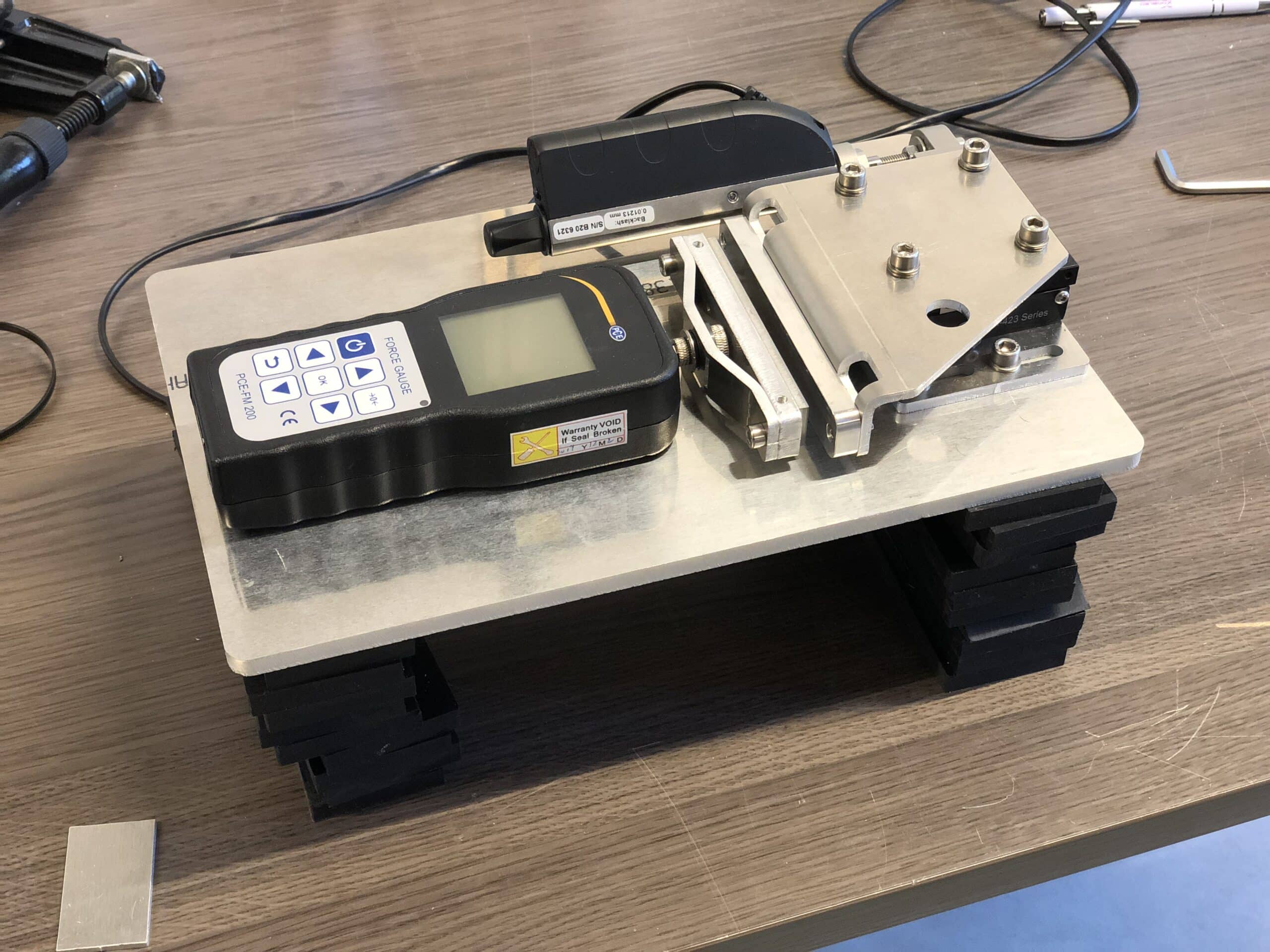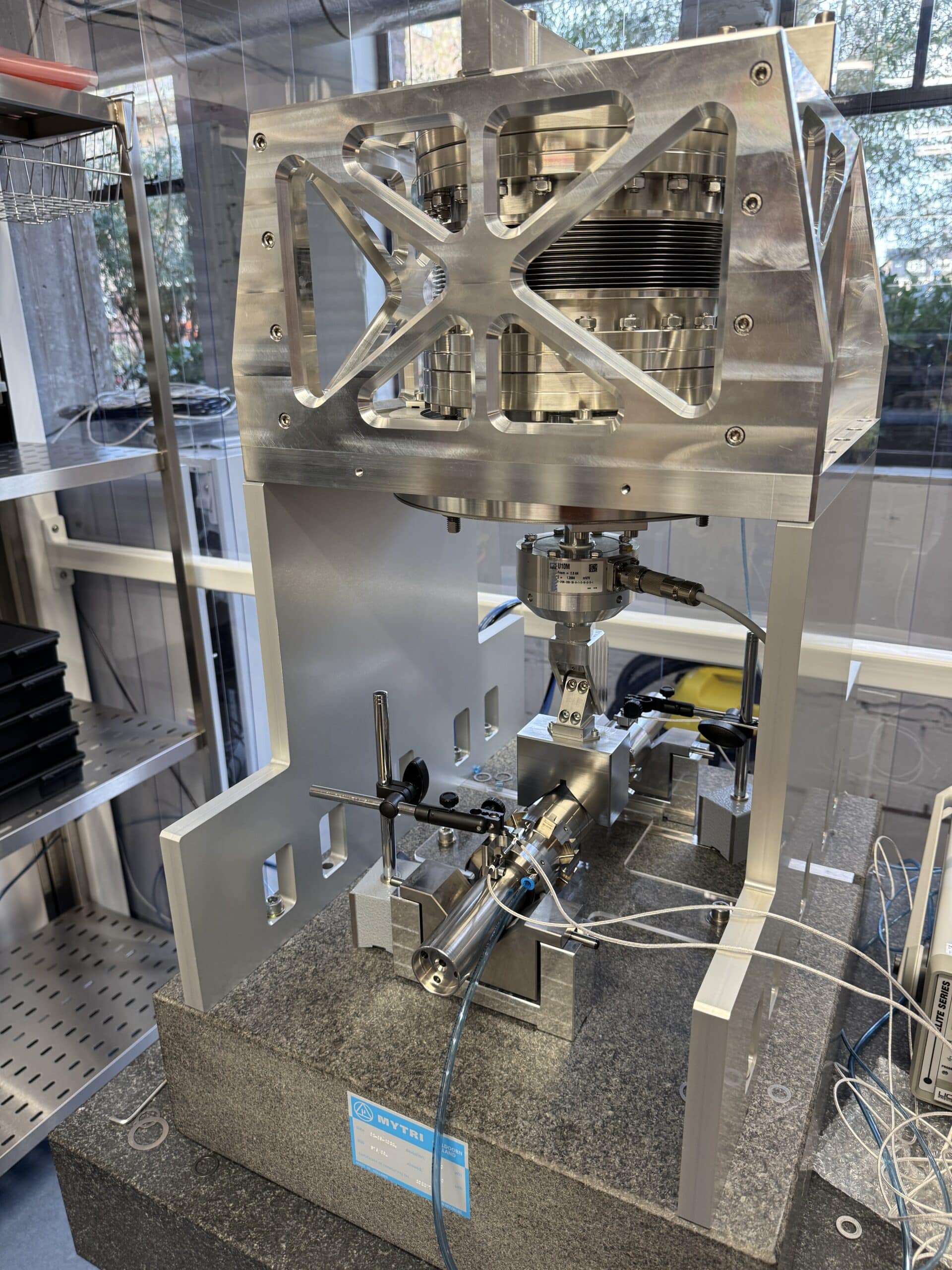 The Air Bearing Tester enables testing of various air bearings by applying controlled forces and measuring performance. Using high-precision sensors, we determine stiffness and airflow as functions of load and air gap. This method has been successfully applied to reticle stages and reticle masks.